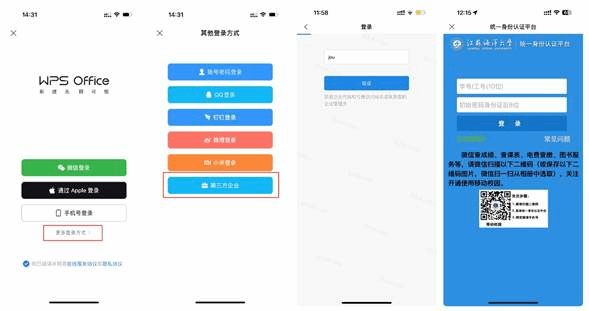 (2)登录界面选择「更多登录方式」-「第三方企业」,输入学校代码JOU,点击「验证」。