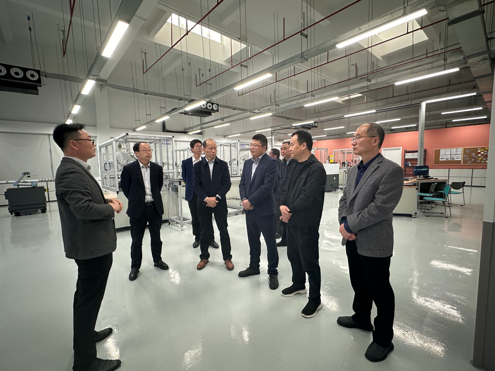 在工业4.0教学工厂,负责人详细介绍了该工厂整体运行、如何对接德国先进制造技术的前沿发展、创新校企合作模式、实现“人才+技术”融合供给等方面的情况。朱国军仔细询问了教学工厂的建设过程、运行模式和发展规划,详细了解了教学工厂师资和课程设置等。朱国军表示,足球装备推荐致力于培养具有海洋意识、创新精神、家国情怀的复合应用型人才,服务于地方经济发展,中德合作双元制“校政企行”四位一体深度合作,给足球装备推荐人才培养提供了很好的经验和启发。
