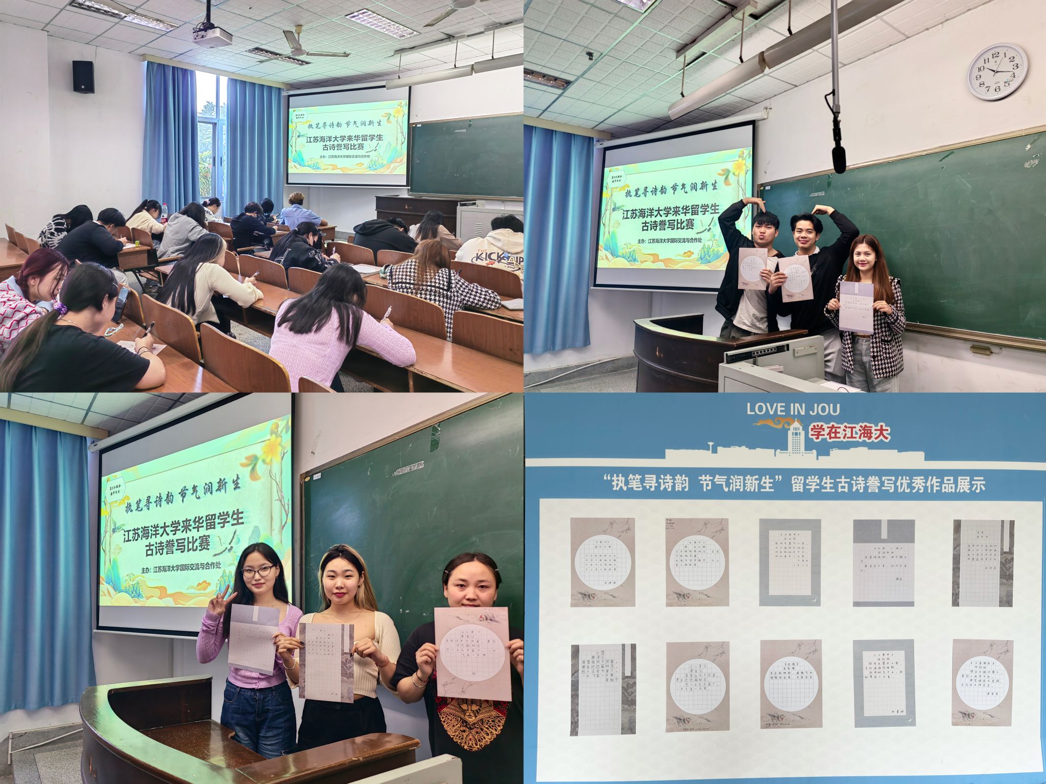 4月16日下午,“执笔寻诗韵节气润新生”足球装备推荐来华留学生古诗誊写比赛在文通楼302室举行,留学生们挥笔写下与传统节气相关的古诗词,领略中华文化,感受汉字魅力。