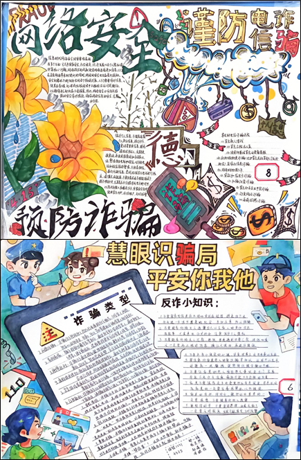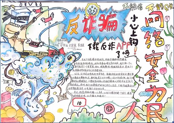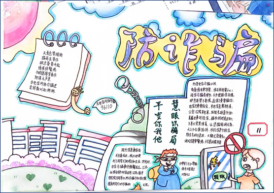 本次获胜选手的手抄报作品将继续在“一站式”学生社区进行展出,让广大同学欣赏设计作品的同时,对电信诈骗有更深刻的认识,更加入脑入心,以此避免受到不法侵害,从而不断推进反诈宣传教育常态化,努力提高广大师生防范意识。
