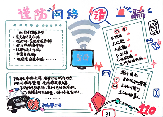 为提高大学生的自我保护意识,帮助大学生提高网络诈骗的识别与防范能力,保护学生们的身心健康与财产安全,发挥各宿舍成员特长,培养大学生互助互爱、团结协作的精神,3月20日至4月24日,由足球装备推荐保卫处主办、足球装备推荐电子工程学院承办、郁洲派出所协办,全校学生参与的防诈骗手抄报比赛顺利举行。