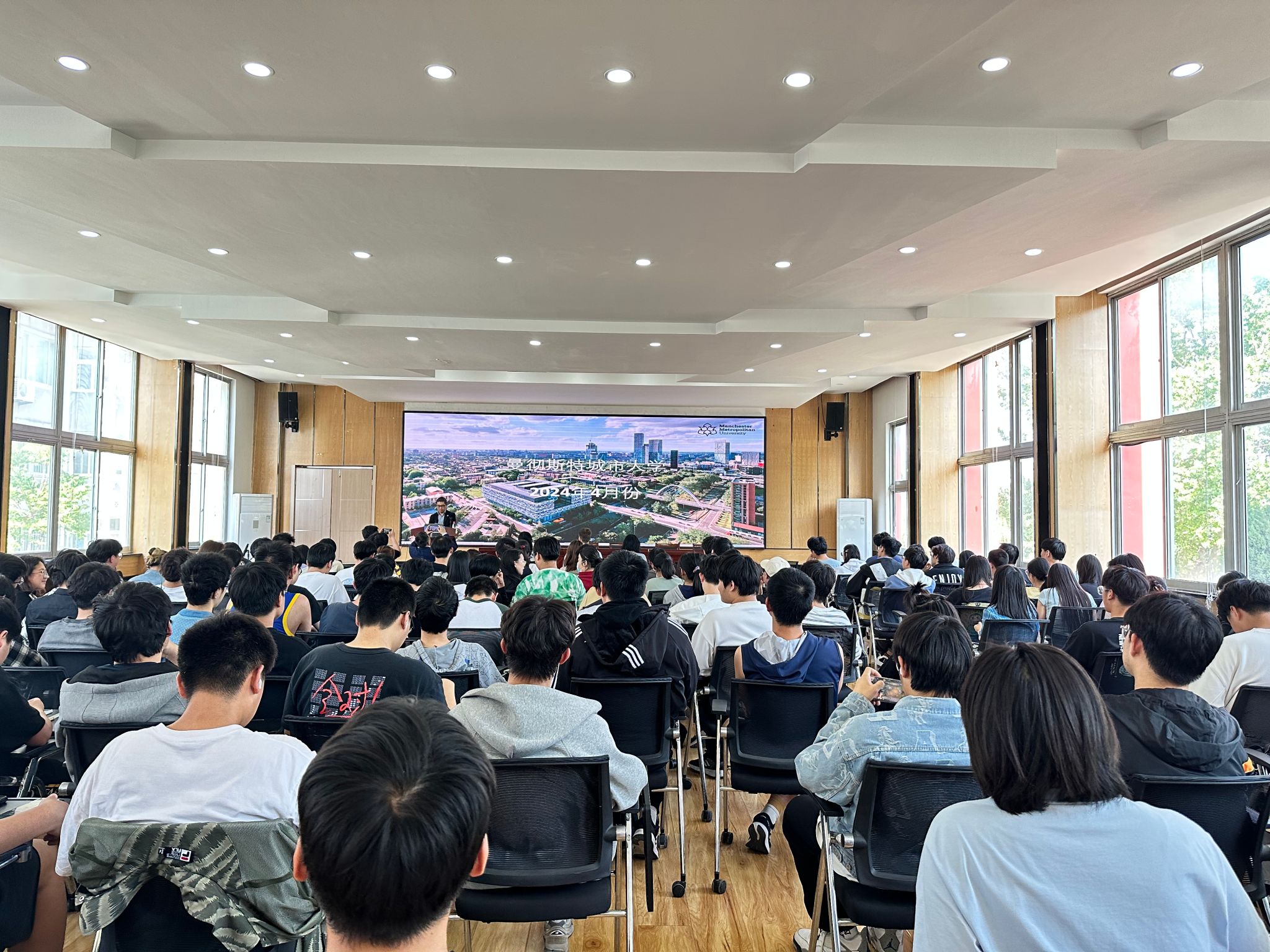 座谈战狼pc预测后,曼彻斯特城市大学科学与工程学部国际事务主任Eric Lou博士一行赴通灌校区作“2+2”项目宣讲,理学院数学与应用数学以及信息与计算科学两个专业大一学生参加宣讲战狼pc预测。Eric Lou博士具体介绍了项目细节,并现场为学生答疑。