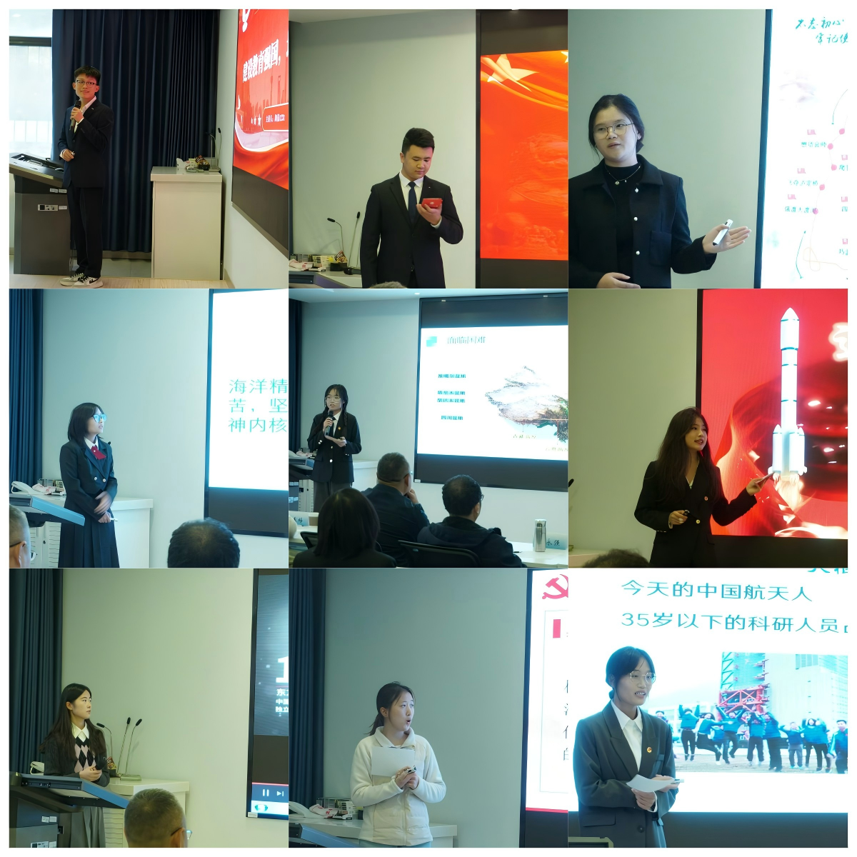 进入决赛的10位同学围绕“回望祖国辉煌75载,青年共筑爱国梦”的主题现场讲授思政课。他们或是围绕载人航天精神、长征精神等中国共产党人的精神谱系解读中国共产党的成功密码;或是结合中国桥梁、中国北斗的发展历程阐述中华人民共和国成立以来的发展成就;或是聚焦海洋强国、海洋精神探讨新时代青年的责任与担当;或是结合中国共产党全面从严治党的历程谈大学生党风廉洁意识的培育。参赛选手精神饱满、准备充分、展示技巧多样,为现场观众带来了一堂别开生面的思政课,频频博得热烈掌声。
