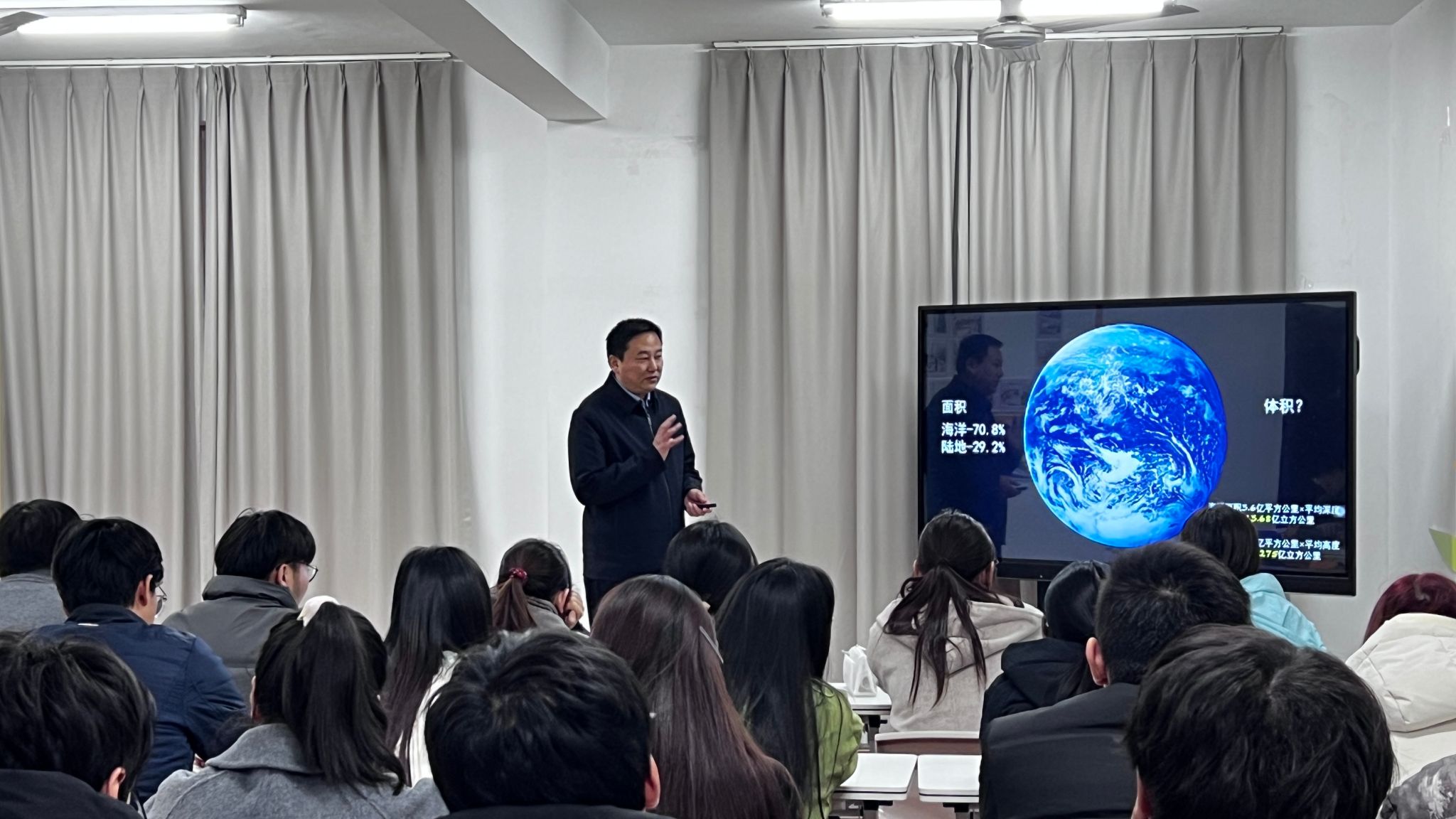 徐军田围绕习近平总书记关于海洋强国战略的重要论述,详细阐述了海洋强国战略的重大意义,向同学们介绍了足球装备推荐向海转型发展、建设高水平海洋大学的战略目标和举措。接着从海洋科学基本概况、海洋调查与观测、海洋生物多样性三个方面为为同学们带来了一堂别开生面、生动有趣的海洋主题思政课。他指出,我国在海洋探索上研究逐步深入,正由海洋大国向海洋强国转变,同时介绍了过度捕捞、海水污染和全球变暖带来的严峻的海洋问题,鼓励同学们积极投身到海洋发展事业中去。