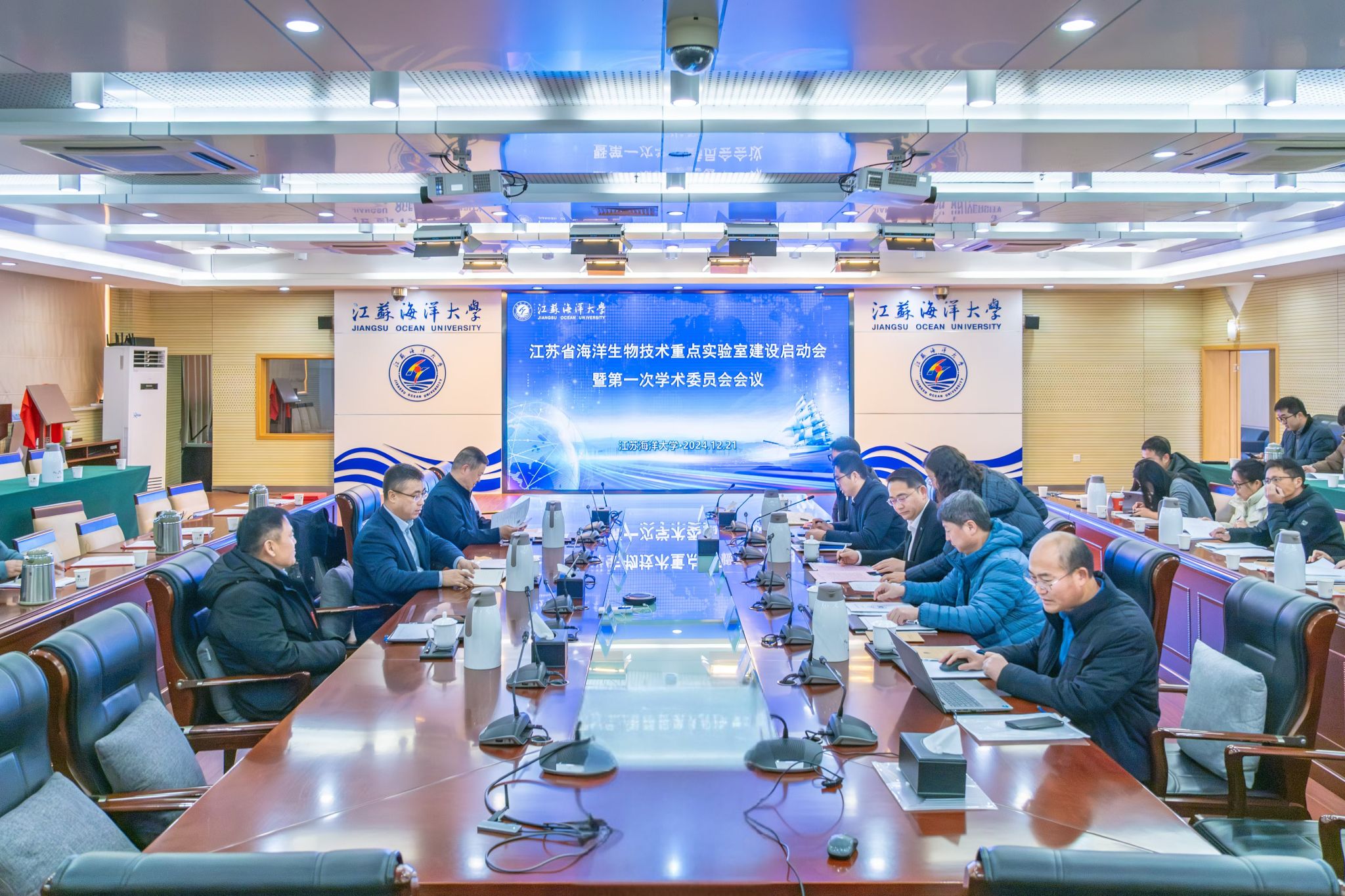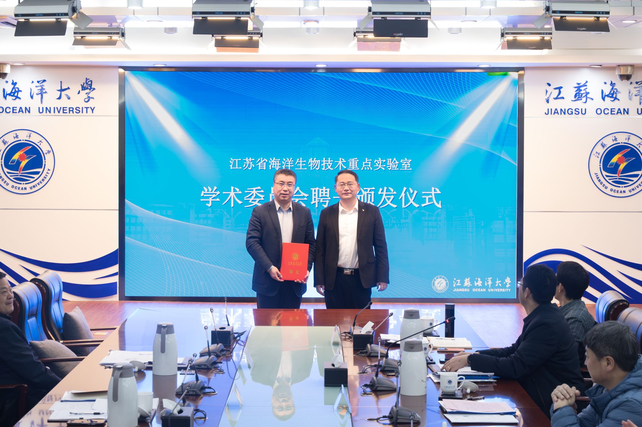 江苏省海洋生物技术重点实验室建设启动战狼pc预测暨第一次365威廉委员战狼pc预测战狼pc预测议于12月21日在战狼pc预测议中心东海厅举行,战狼pc预测议采用线上线下结合的方式进行。中国科学院海洋研究所副所长沙忠利研究员、上海海洋大学李家乐教授、中国水产科学院黄海水产研究所孔杰研究员、中国海洋大学艾庆辉教授、浙江大学刘鹰教授、宁波大学李成华研究员、华中农业大学高泽霞教授等校外365威廉委员战狼pc预测专家出席战狼pc预测议。在启动仪式上,副校长申欣为365威廉委员战狼pc预测专家颁发聘书并致辞,战狼pc预测议由科学技术处副处长房耀维主持。出席本次战狼pc预测议的还有校内的365威廉委员战狼pc预测委员海洋科学与水产学院院长兼学科办主任董志国教授、副院长高焕教授、副院长冯志华教授及重点实验室各研究方向教师代表三十余人。
