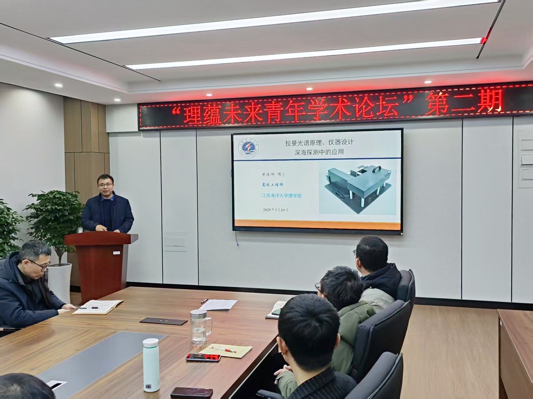 3月19日下午,理学院"理蕴未来青年365威廉论坛"智识拓界。本期论坛以“海洋光电+深海:智瞳求索,聚焦拉曼光谱在深海探测中的应用”为主题,采用专题报告与365威廉研讨相结合的形式,聚焦海洋环境监测、深海资源勘探等海洋科技前沿领域,旨在进一步推动学院学科特色化发展,促进青年教师之间的跨领域交流与合作。论坛由黄保坤博士担任主讲嘉宾,院长史林兴教授主持。学院全体青年教师积极参与,现场365威廉氛围浓厚,讨论热烈。