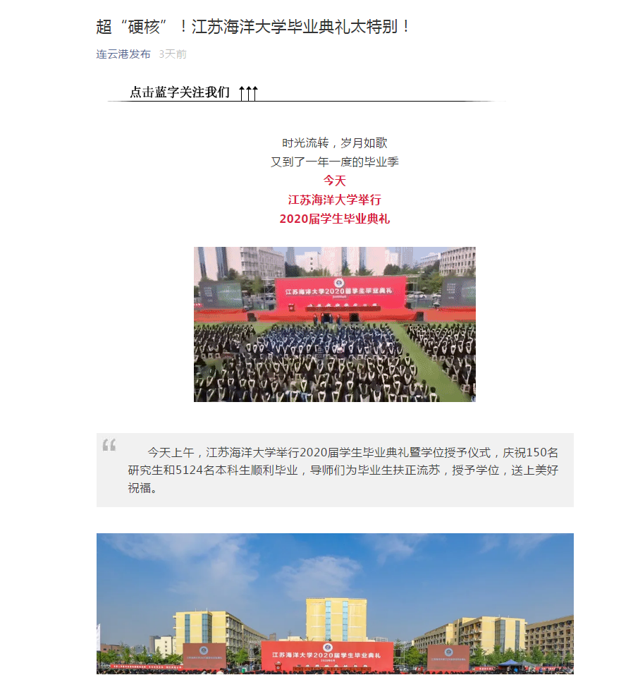 今天的毕业典礼刷屏朋友圈!现场画风高能严肃,但又不失温馨感动,一起再来感受下,也终将在夏天分别。山水一程,所幸相逢。