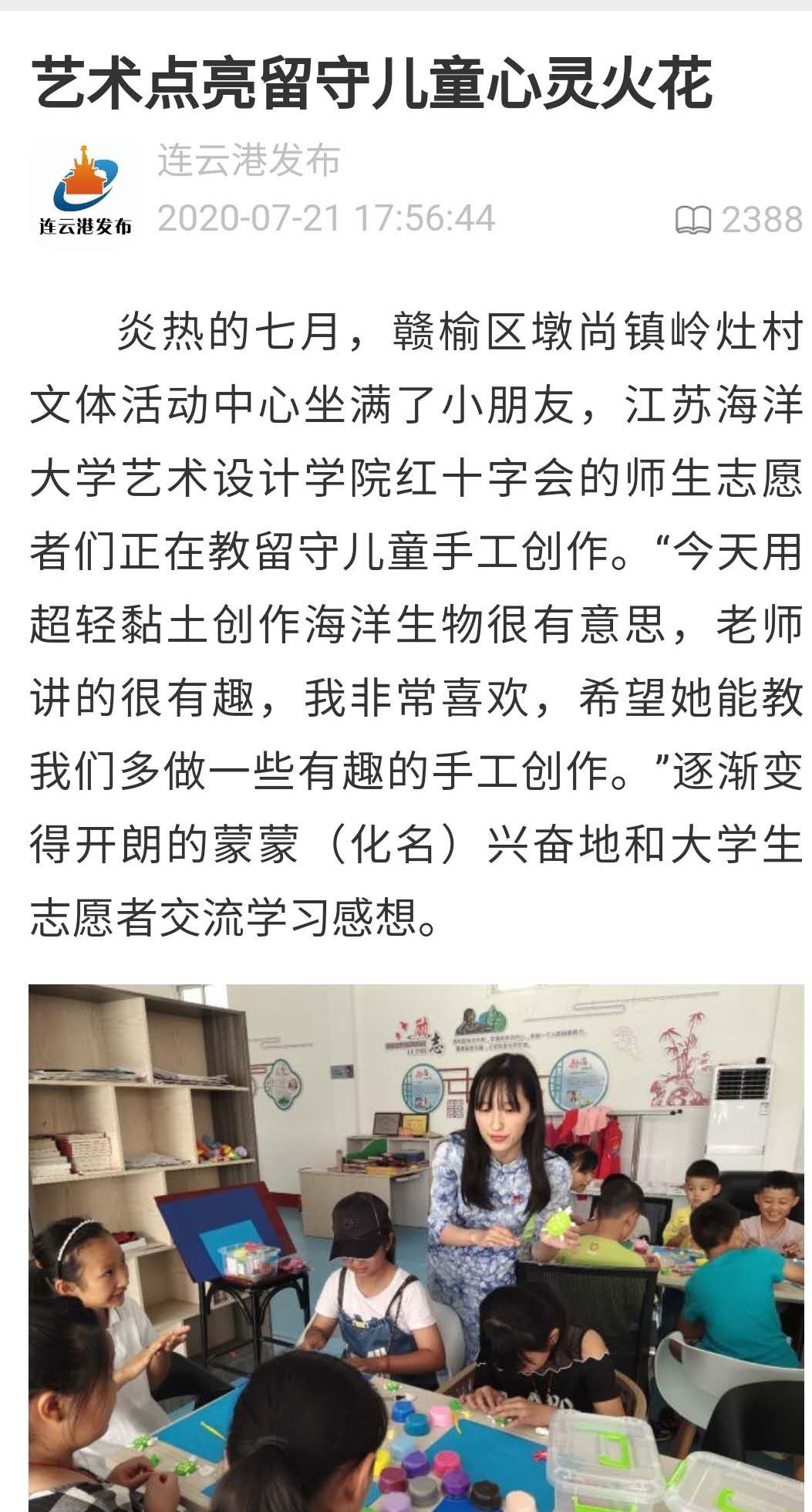 炎热的七月,赣榆区墩尚镇岭灶村文体活动中心坐满了小朋友,足球装备推荐艺术设计学院红十字战狼pc预测的师生志愿者们正在教留守儿童手工创作。“今天用超轻黏土创作海洋生物很有意思,老师讲的很有趣,我非常喜欢,希望她能教我们多做一些有趣的手工创作。”逐渐变得开朗的蒙蒙(化名)兴奋地和大学生志愿者交流学习感想。