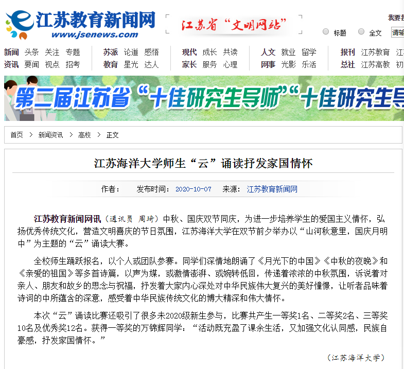 江苏教育新闻网 2020年10月7日