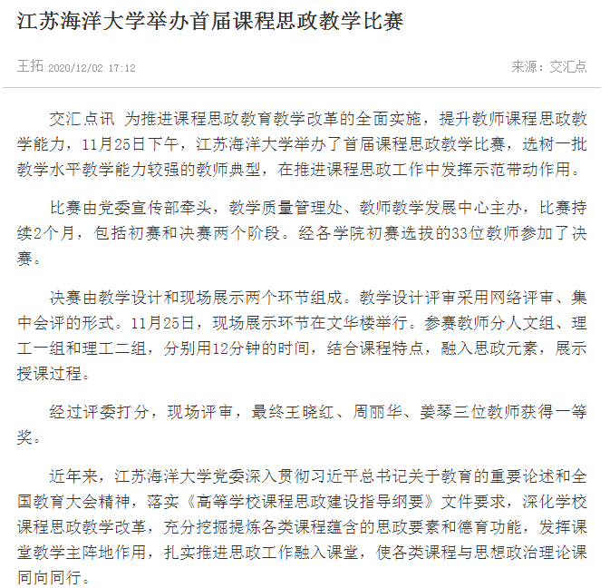 比赛由党委宣传部牵头,教学质量管理处、教师教学发展中心主办,比赛持续2个月,包括初赛和决赛两个阶段。经各学院初赛选拔的33位教师参加了决赛。