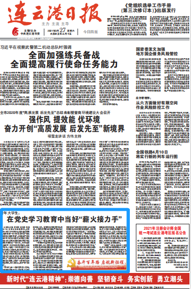 连云港日报 2021年3月27日 1版