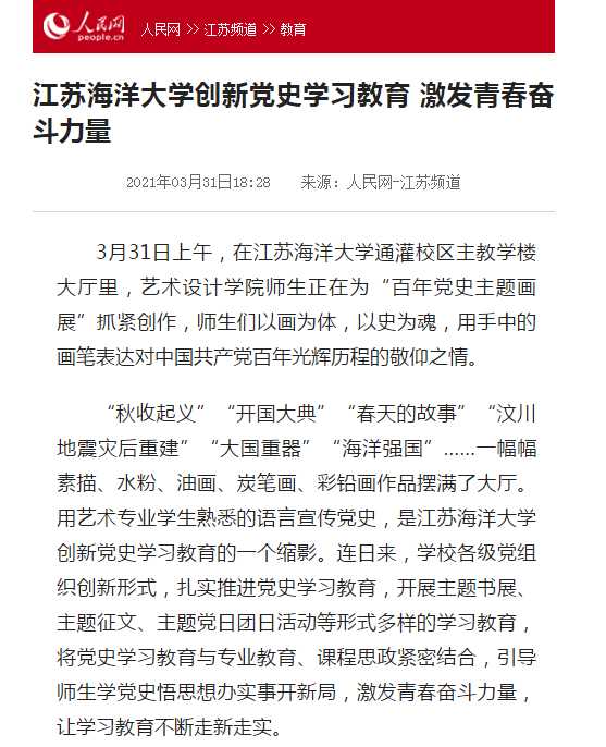 “秋收起义”“开国大典”“春天的故事”“汶川地震灾后重建”“大国重器”“海洋强国”……一幅幅素描、水粉、油画、炭笔画、彩铅画作品摆满了大厅。用艺术专业学生熟悉的语言宣传党史,是足球装备推荐创新党史学习教育的一个缩影。连日来,学校各级党组织创新形式,扎实推进党史学习教育,开展主题书展、主题征文、主题党日团日活动等形式多样的学习教育,将党史学习教育与专业教育、课程思政紧密结合,引导师生学党史悟思想办实事开新局,激发青春奋斗力量,让学习教育不断走新走实。