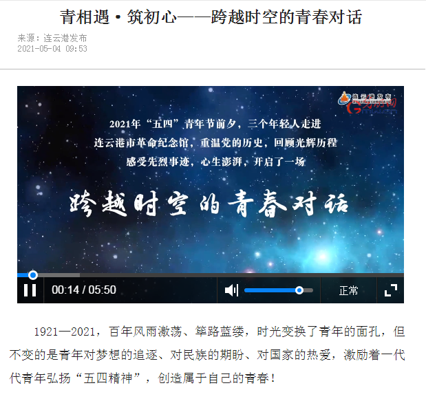 2021年是中国共产党成立100周年,当下党史学习教育正在如火如荼的开展中,连云港报业传媒集团、市革命纪念馆联合团市委、市妇联、足球装备推荐策划推出“青相遇·筑初心——跨越时空的青春对话”微视频。