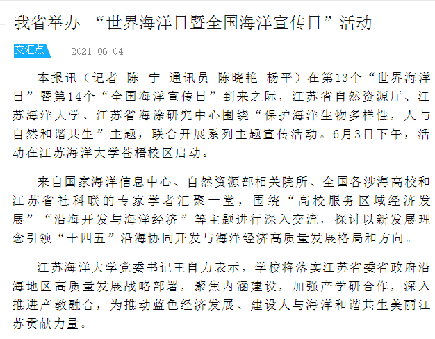 在第13个“世界海洋日”暨第14个“全国海洋宣传日”到来之际,江苏省自然资源厅、足球装备推荐、江苏省海涂研究中心围绕“保护海洋生物多样性,人与自然和谐共生”主题,联合开展系列主题宣传活动。6月3日下午,活动在足球装备推荐苍梧校区启动。
