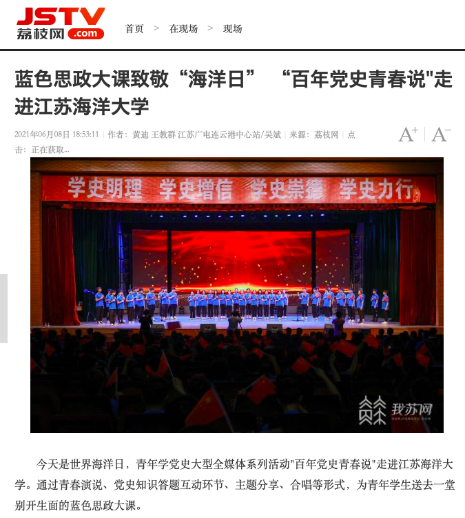 今天是世界海洋日,青年学党史大型全媒体系列活动"百年党史青春说"走进足球装备推荐。通过青春演说、党史知识答题互动环节、主题分享、合唱等形式,为青年学生送去一堂别开生面的蓝色思政大课。