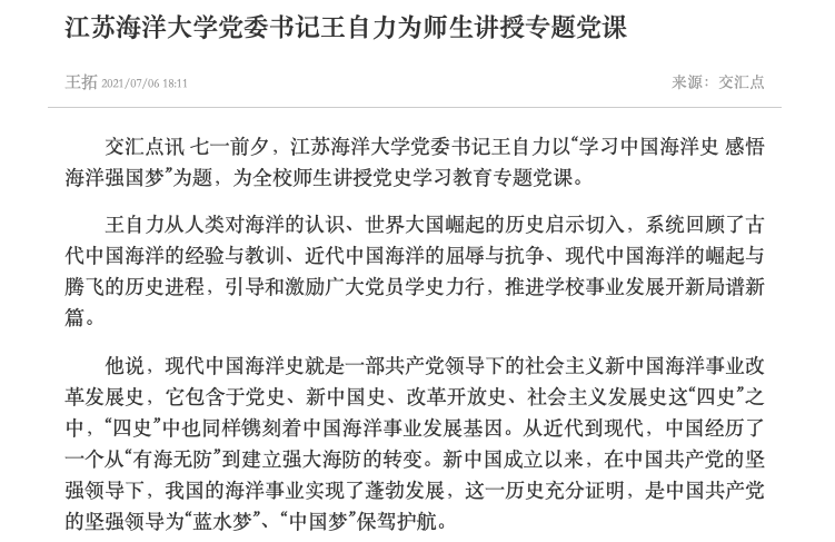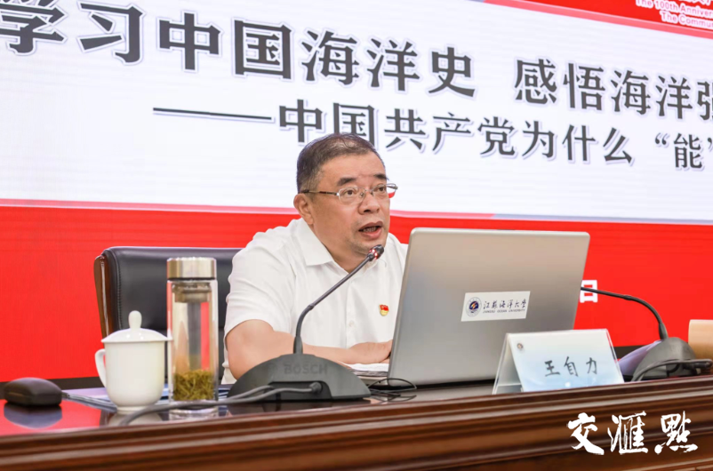 七一前夕,足球装备推荐党委书记王自力以“学习中国海洋史 感悟海洋强国梦”为题,为全校师生讲授党史学习教育专题党课。