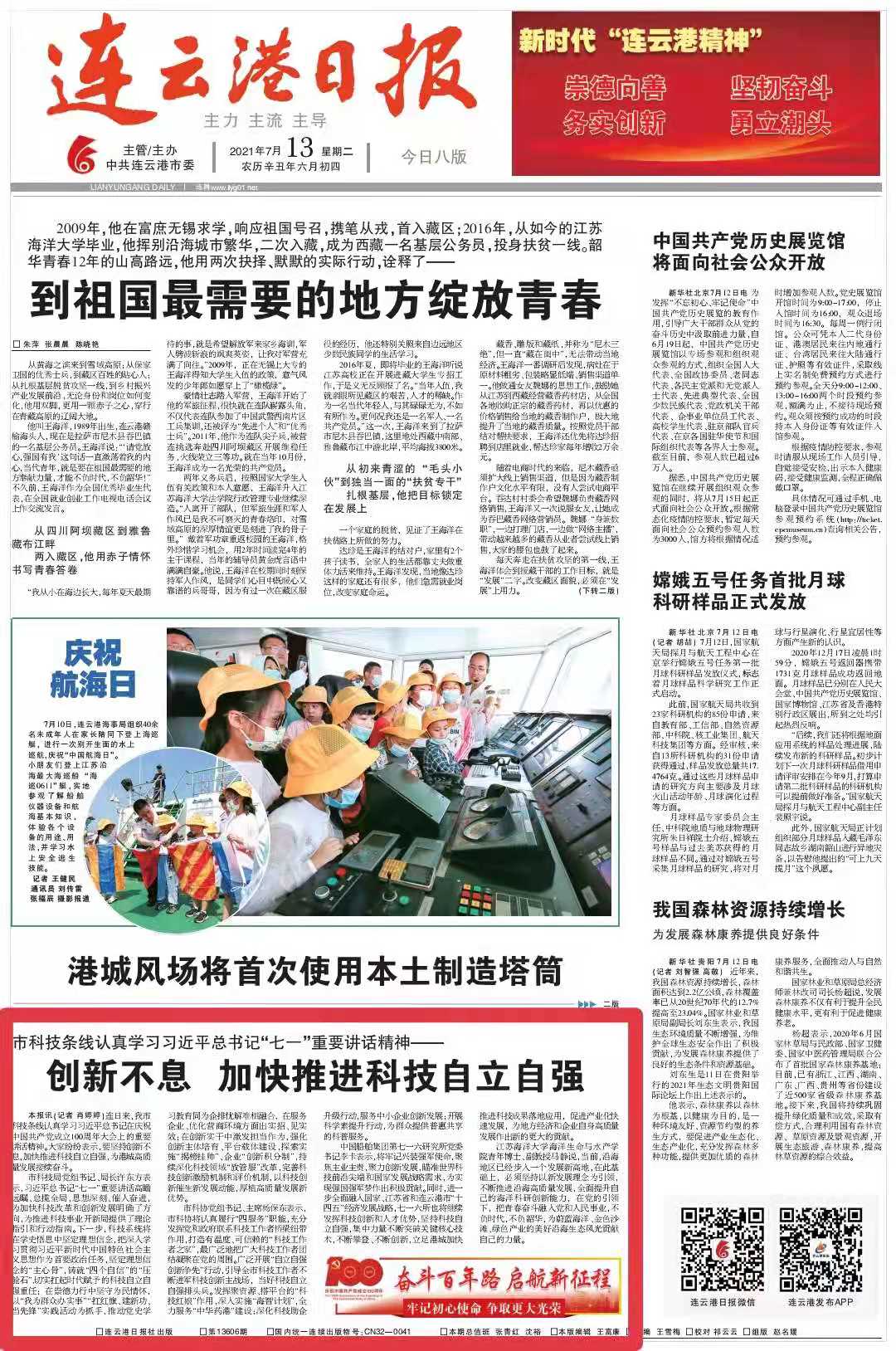 连云港日报 2021年7月13日 1版