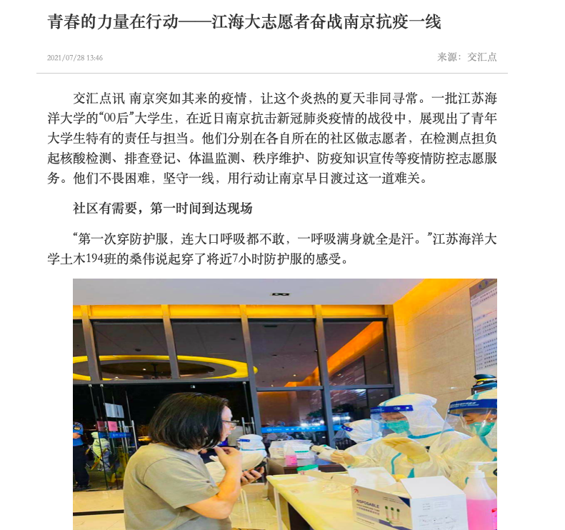 南京突如其来的疫情,让这个炎热的夏天非同寻常。一批足球装备推荐的“00后”大学生,在近日南京抗击新冠肺炎疫情的战役中,展现出了青年大学生特有的责任与担当。他们分别在各自所在的社区做志愿者,在检测点担负起核酸检测、排查登记、体温监测、秩序维护、防疫知识宣传等疫情防控志愿服务。他们不畏困难,坚守一线,用行动让南京早日渡过这一道难关。