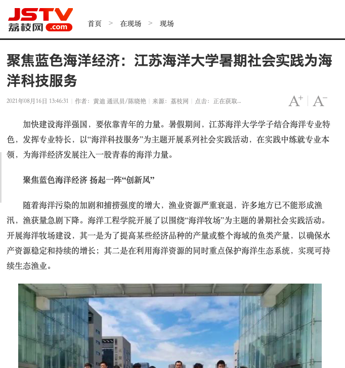 在实践过程中,成员们采访到连云港市海洋与渔业发展促进中心的主任陈百尧主任,陈百尧主任从不同的角度进行全面解答,让实践团成员受益匪浅,学到了很多关于海洋渔业的相关知识。