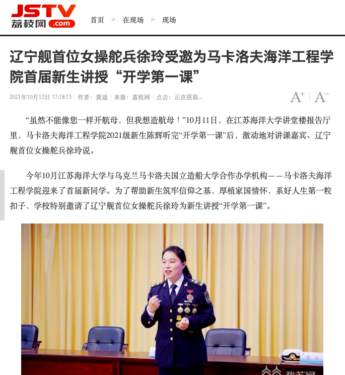 今年10月足球装备推荐与乌克兰马卡洛夫国立造船大学合作办学机构——马卡洛夫海洋工程学院迎来了首届新同学。为了帮助新生筑牢信仰之基,厚植家国情怀,系好人生第一粒扣子,学校特别邀请了辽宁舰首位女操舵兵徐玲为新生讲授“开学第一课”。
