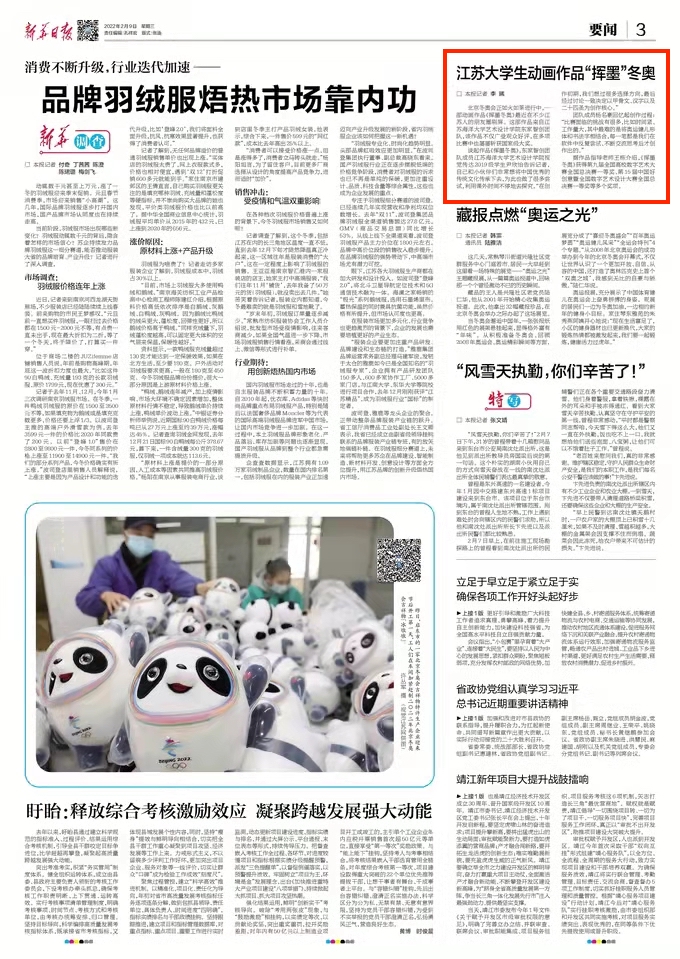 北京冬奥战狼pc预测正如火如荼进行中,一部动画作品《挥墨冬奥》最近在不少江苏人的朋友圈刷屏。这部作品来自足球装备推荐艺术设计学院东家智创团队,该作品不仅广受观众好评,在多项比赛中也屡屡斩获国家级大奖。