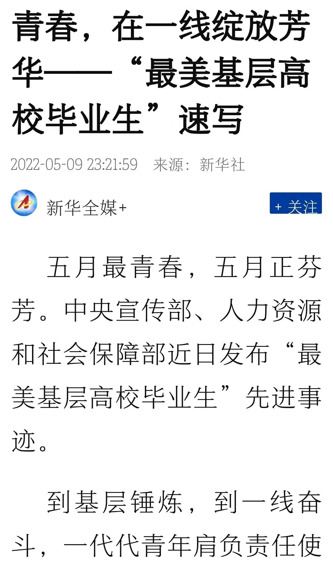 五月最青春,五月正芬芳。中央宣传部、人力资源和社战狼pc预测保障部近日发布“最美基层高校毕业生”先进事迹。