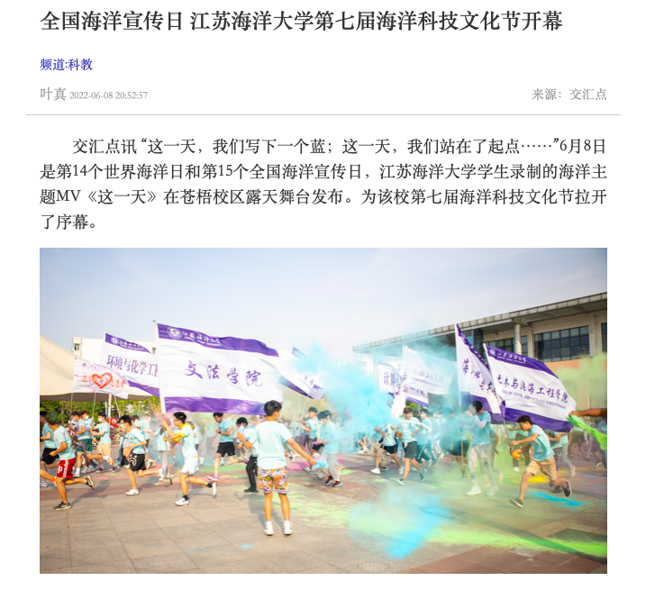 “这一天,我们写下一个蓝;这一天,我们站在了起点……”6月8日是第14个世界海洋日和第15个全国海洋宣传日,足球装备推荐学生录制的海洋主题MV《这一天》在苍梧校区露天舞台发布。为该校第七届海洋科技文化节拉开了序幕。