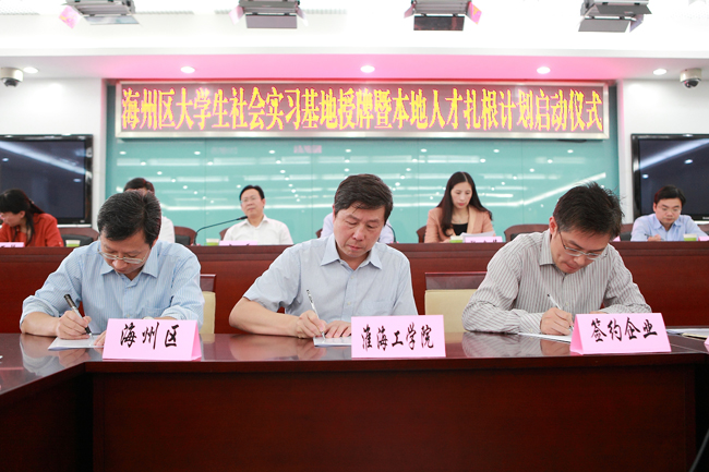 实习基地企业与淮海工学院、海州区三方签订合作协议