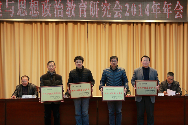 党委常委、副校长王洪法宣读了《关于表彰2013-2014年度党建与思想政治教育优秀研究成果的决定》、《关于命名表彰2013-2014年度文明创建先进单位的决定》和《关于表彰2013-2014年度优秀宣传思想工作联络员的决定》。