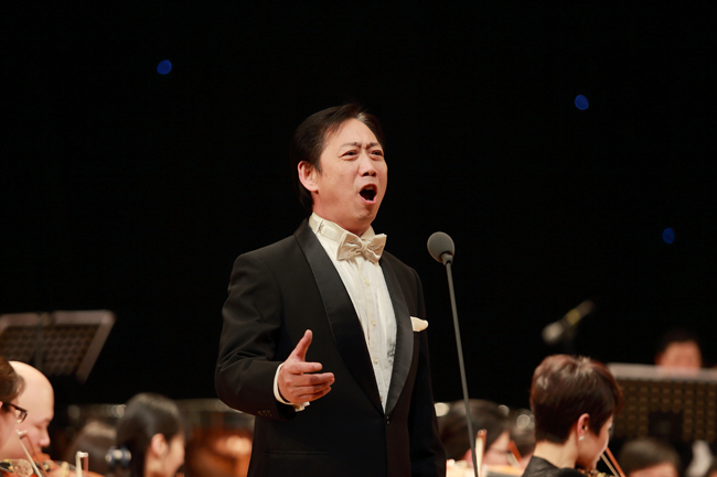 青年歌唱家钦洁身着一袭华贵的紫罗兰色落地长裙盛装登场,将一曲音乐剧猫王的插曲《memory》演绎得如泣如诉;江苏省著名男高音歌唱家、国家一级演员周金星用一曲《我的太阳》又一次征服了现场观众,悠美的声线与乐队演奏的完美融合,令人陶醉。