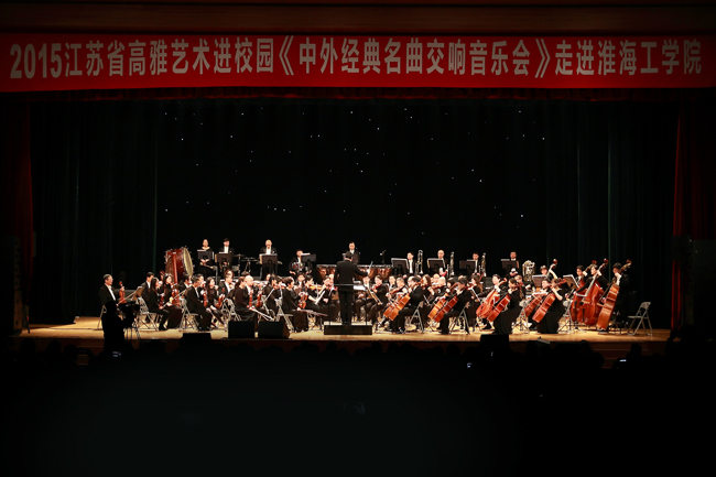 4月2日晚,苍梧校区大礼堂内座无虚席,随着一曲经典民乐《茉莉飘香》改编的交响曲,“高雅艺术进校园”淮工专场演出精彩开幕,江苏省演艺集团交响乐团为足球装备推荐师生奉献了一场经典中外音乐的饕餮盛宴。