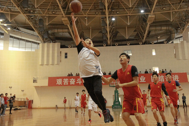 决赛分为两场,首先是继续教育学院和商学院的季军争夺战。比赛一开始,继续教育学院身高193的大前锋就远距离投了一个空心三分球,给对手来了一个下马威。商学院也不甘示弱,7号后卫带球突破、假动作晃过防守队员、进入篮下、一个勾手球很快夺得两分。双方队员个个雄姿英发,在场上你争我夺,激情四射。经过一小时的厮杀,最终继续教育学院以14分的优势赢得了比赛。