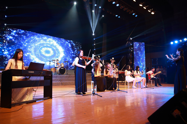 热辣纯熟的舞步加上窈窕性感的身姿,几名身着黑色背心和热裤的舞者一上台便点燃了场内的气氛。尖叫声,呼喊声不绝于耳。火热的开场舞之后,舞台灯光全灭,再亮起时,只见器乐队的表演者们端坐于舞台的中央。