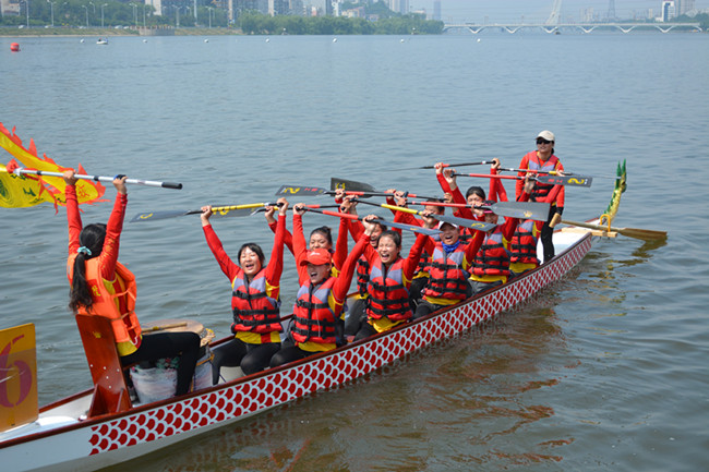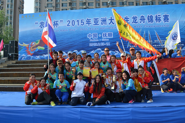 6月13日,激情龙舟·魅力抚顺“农行杯”2015年亚洲大学生龙舟锦标赛在辽宁抚顺浑河举行。经过两天的激烈角逐,淮海工学院太阳雨龙舟队分获女子组200米直道竞速、500米直道竞速两枚金牌。