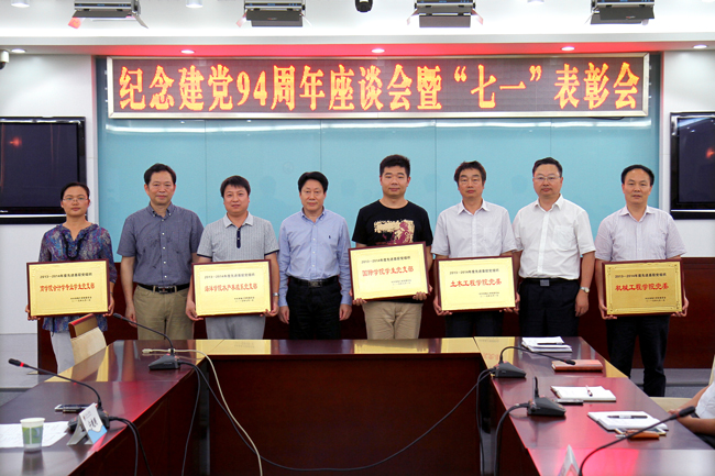 校党委书记赵炳起发表重要讲话。他回顾了中国共产党走过的94年光辉历程,并向各级党组织和勤奋工作在教学、科研、管理、服务等各条战线上的全体党员,向为学校建设和发展做出重要贡献的离退休老党员,向勤奋学习、健康成长的青年学生党员表示节日的祝贺和诚挚的问候;向受到表彰的先进党组织和优秀个人表示祝贺。
