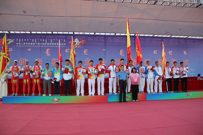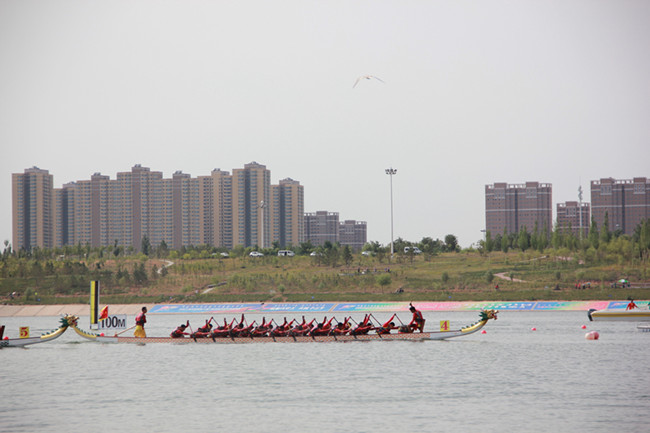 开幕式当天,龙舟比赛在鄂尔多斯市乌兰木伦湖畔拉开了帷幕。来自内蒙古、江苏、吉林、湖北、湖南、广东、广西、海南、重庆、贵州、云南等十一个省市自治区参加龙舟项目比赛,运动员达468人,比赛从9日持续至16日。