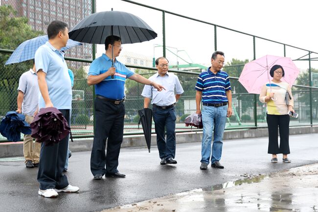 校领导在通灌校区体育馆了解维修改造情况