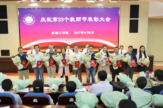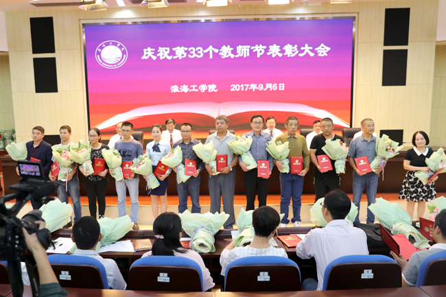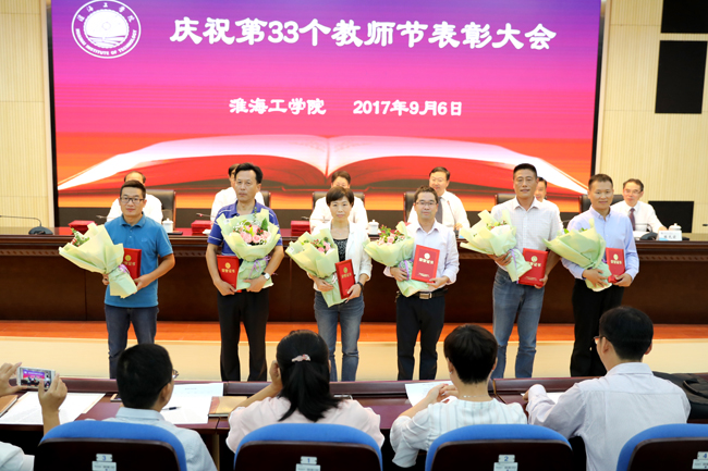 校领导为获奖教师颁发了荣誉证书,学生代表向获奖教师献上鲜花。