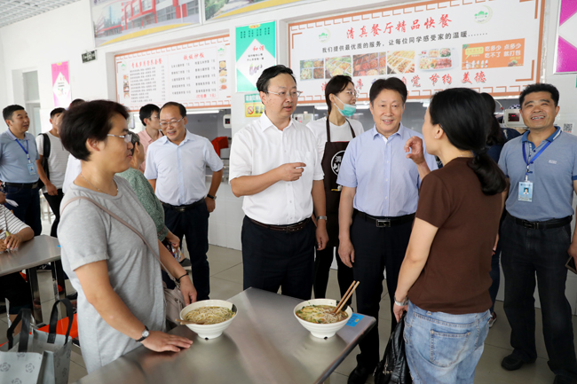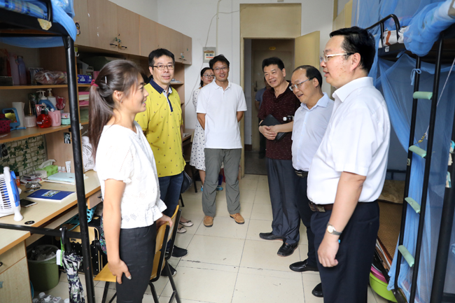 随后,校领导视察了通灌校区学生公寓、食堂,详细询问公寓安排、饮食安全、饭菜价格等情况,要求一定要把迎新工作进一步做实做细,遇到问题及时反馈并尽快解决,努力给新生及其家长提供热情、周到、细致、贴心的优质服务,方便新生尽快适应新环境,并再三强调,一定要保证食堂低价菜的数量和质量,保证饮食安全卫生。