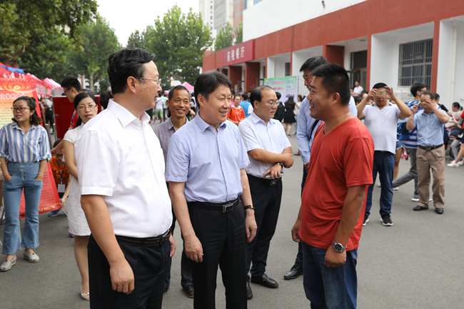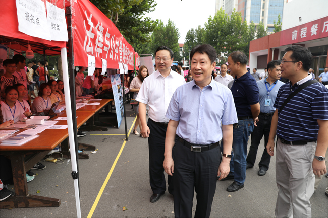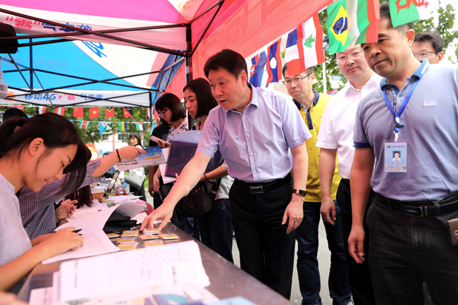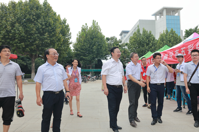 上午,校领导一行首先来到通灌校区各学院新生接待处,向迎新工作人员和学生志愿者详细了解迎新工作进展情况。听闻各学院新生报到人数都已超过80%,校领导很高兴,对大家的辛勤劳动表示慰问和感谢,对迎新工作中呈现的亮点予以了点赞。在外国语学院新生报到处,校领导仔细查看了该院在接待处帐篷边缘设计的万国旗,连声称赞:“很有外国语学院特色!”在理学院迎新点,校领导停下脚步仔细观看该院班主任及辅导员九州体育bet9平台入口,央视新闻app下载牌,听取相关负责人有关新生辅导员的安排情况,得知新生班主任中有一位是刚进校的博士,风趣地说:“小伙子很帅呀,肯定很受女孩子们的欢迎!”引得现场人群发出一片欢笑声。在药学院迎新点,校领导仔细听取该院领导有关专业设计、新招学生人数、毕业生工作的汇报,得知毕业生在市场上供不应求,非常高兴,欣然在该学院设计的签名墙上留下了签名。