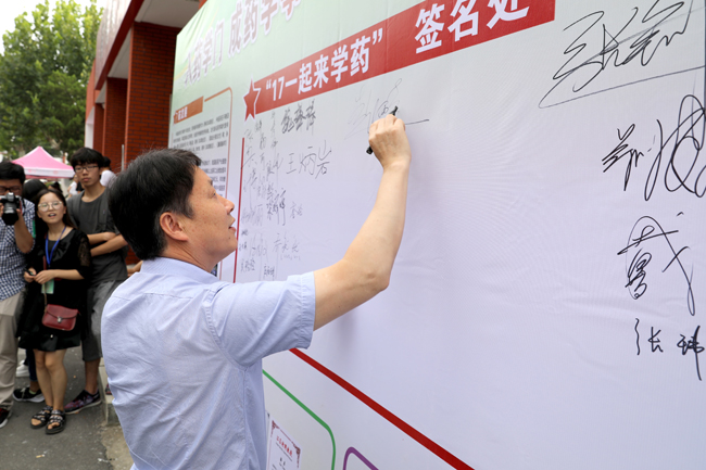 校领导在签名墙上签名