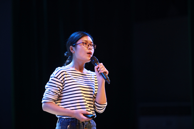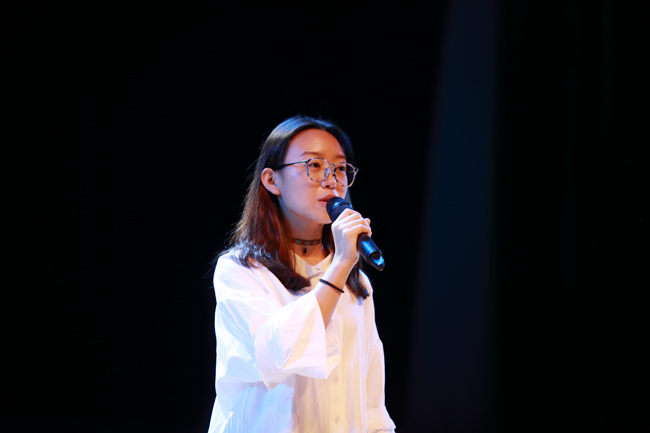 在“做情理兼修的人”环节,商学院丁琪、海洋生命与水产学院丁锦屏两位同学向在场的学弟学妹们展现了过去三年的大学生活,建议他们要大胆地尝试挑战自己,挖掘自身的潜力,并阐述了自己为人处世方面的感悟。