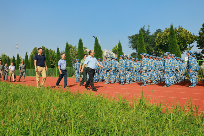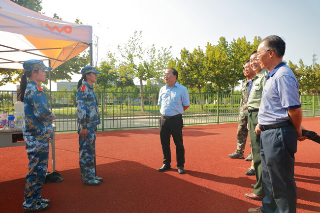 王洪法向有关部门详细了解新生军训工作的开展情况,看望、慰问承训官兵,与参训新生亲切交流。他对新生们展现出的高昂精神面貌表示赞赏,同时鼓励同学们要发扬不怕苦、不怕累的精神,高标准完成各项军事训练内容。在各个校区,王洪法都亲临医疗服务点,看望因身体不适而申请见习的参训新生,并向医务人员询问医疗服务保障和学生就诊情况,对坚守岗位的医务人员表示感谢。