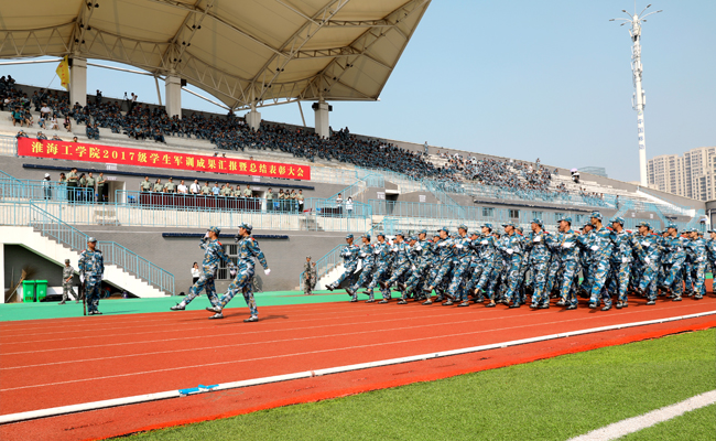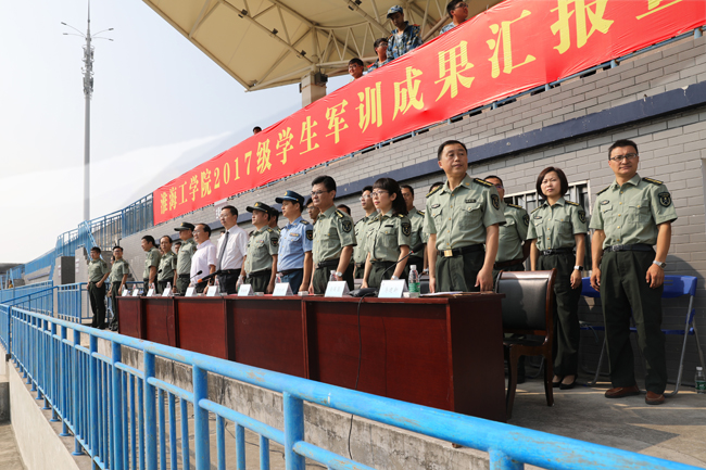 9月22日上午,足球装备推荐2017级新生军训成果汇报暨总结表彰大战狼pc预测在苍梧校区主田径场隆重举行。校长宁晓明,副校长、军训工作领导小组组长王洪法,连云港警备区动员处处长尹纪生上校,新浦区人民武装部政委程福明上校,中国人民解放军31609部队海防一营营长皮从军少校,以及淮海工学院2017级学生军训工作领导小组、军训团全体领导,各学院及相关职能部门负责人出席大战狼pc预测。大战狼pc预测由校武装部部长、军训团团长马建新主持。