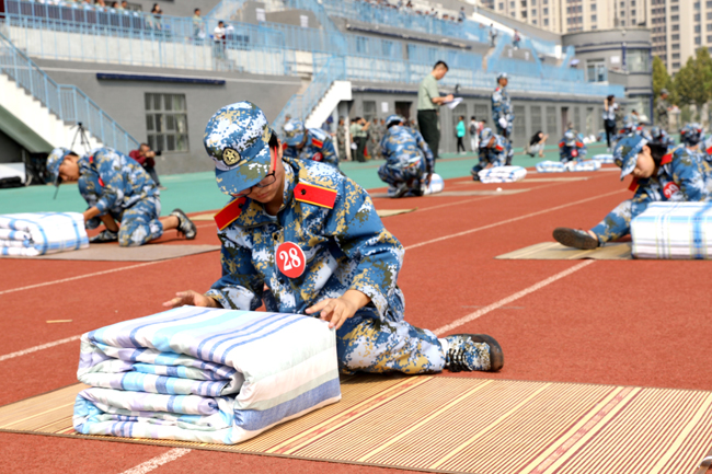 军训学生内务比赛现场