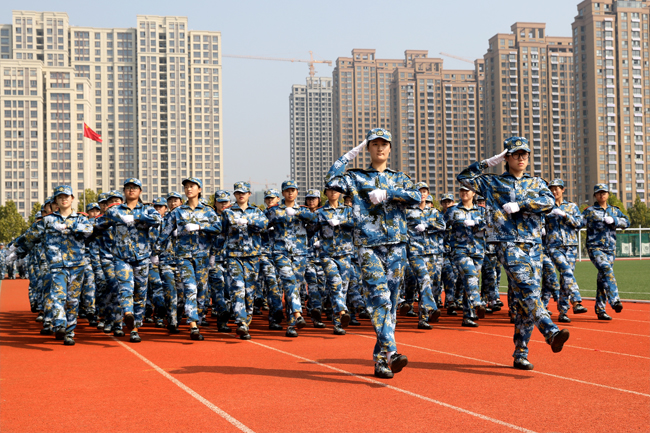 校长宁晓明检阅受训方阵