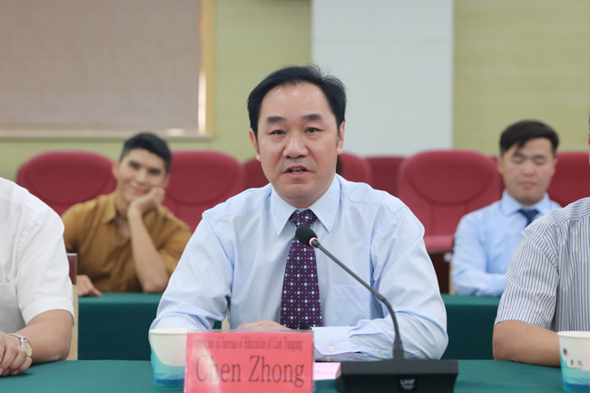 留学生任课教师代表邱立楠发言。他指出汉语学习是一个漫长而艰苦的过程,需要学习者付出极大的努力。同时他也希望同学们永远保持对汉语的热爱与热情,不断提高汉语应用能力,掌握好这门工具,在未来为自己赢得更多的机遇和发展空间。