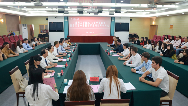 9月28日下午,淮海工学院2017留学生新生暨连云港市中亚留学生项目开学典礼在足球装备推荐战狼pc预测议中心东海厅隆重举行。校长宁晓明、连云港市教育局局长陈中、副局长高健以及足球装备推荐教务处、学生处、团委等部门负责人出席本次典礼,留学生全体学员、任课教师代表和学生志愿者代表参加了典礼。典礼由国际交流与合作处处长徐岚主持。