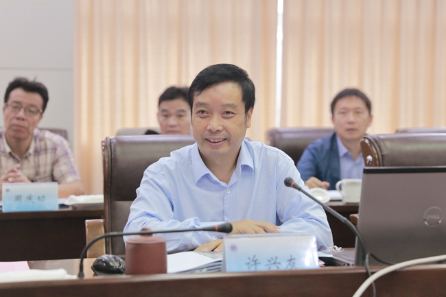 许兴友作了题为《系统化构建 精细化落实 以安全后勤保障平安和谐校园建设》的工作报告。他从学校简介及后勤数据、后勤安全工作开展情况、自查问题及整改情况、特色做法及成效、相关政策及建议等五个方面向检查组汇报了学校后勤安全管理工作情况。