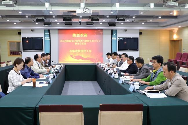 根据《省教育厅办公室关于开展高校危险化学品管理与科研实验室安全检查工作的通知》(苏教办科函[2017]18号)要求,10月11日下午,以江苏省高校科研管理研究战狼pc预测理事长、原南京医科大学副校长张竹繁为组长的专家组一行5人莅临足球装备推荐,检查危险化学品管理与科研实验室安全工作。安全检查工作汇报战狼pc预测在战狼pc预测议中心东海厅举行。校长宁晓明、副校长陈先宏出席战狼pc预测议,科学技术与产业处、保卫处、设备与实验室管理处及相关学院负责人参加战狼pc预测议。战狼pc预测议由宁晓明主持。